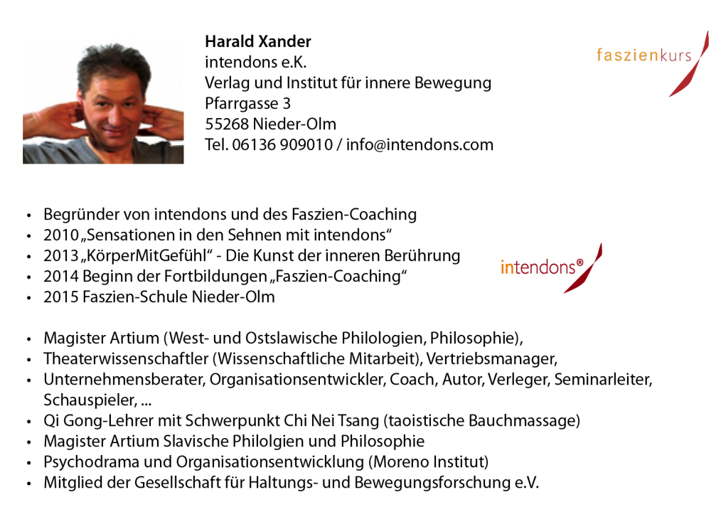 Inneres Dehnen - yintendonsBeim inneren Dehnen nutzen Sie die innere Bewegung zur Weitung des inneren Raums. Es werden nicht einzelne Sehnen oder Muskeln gedehnt, sondern das Fasziennetz in seiner Gesamtheit. Der Eindruck, mehr inneren Raum zu haben, entsteht dadurch, dass Organe, Muskeln und Bindegewebe wieder besser und gegeneinander gleiten.